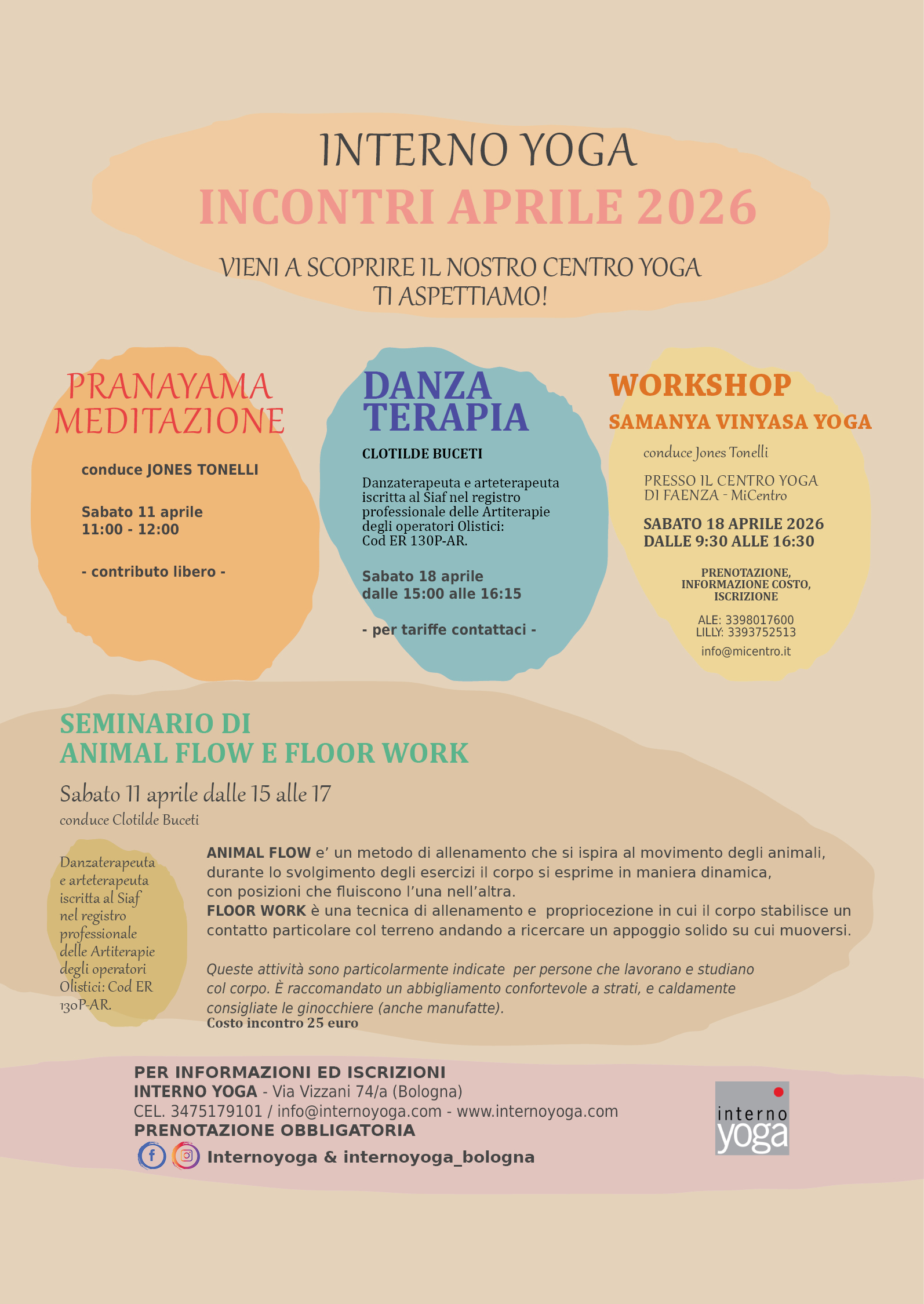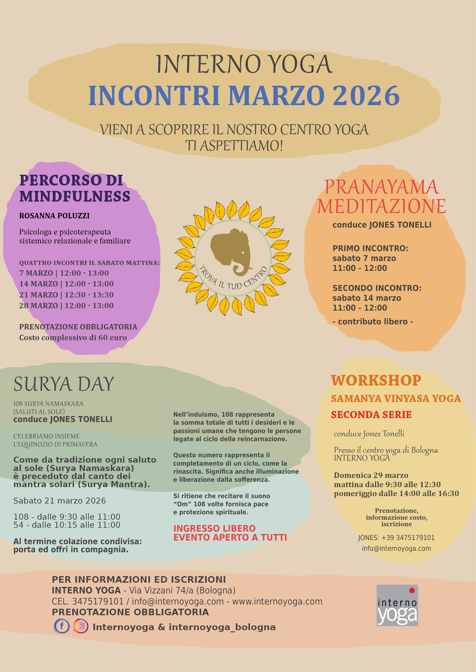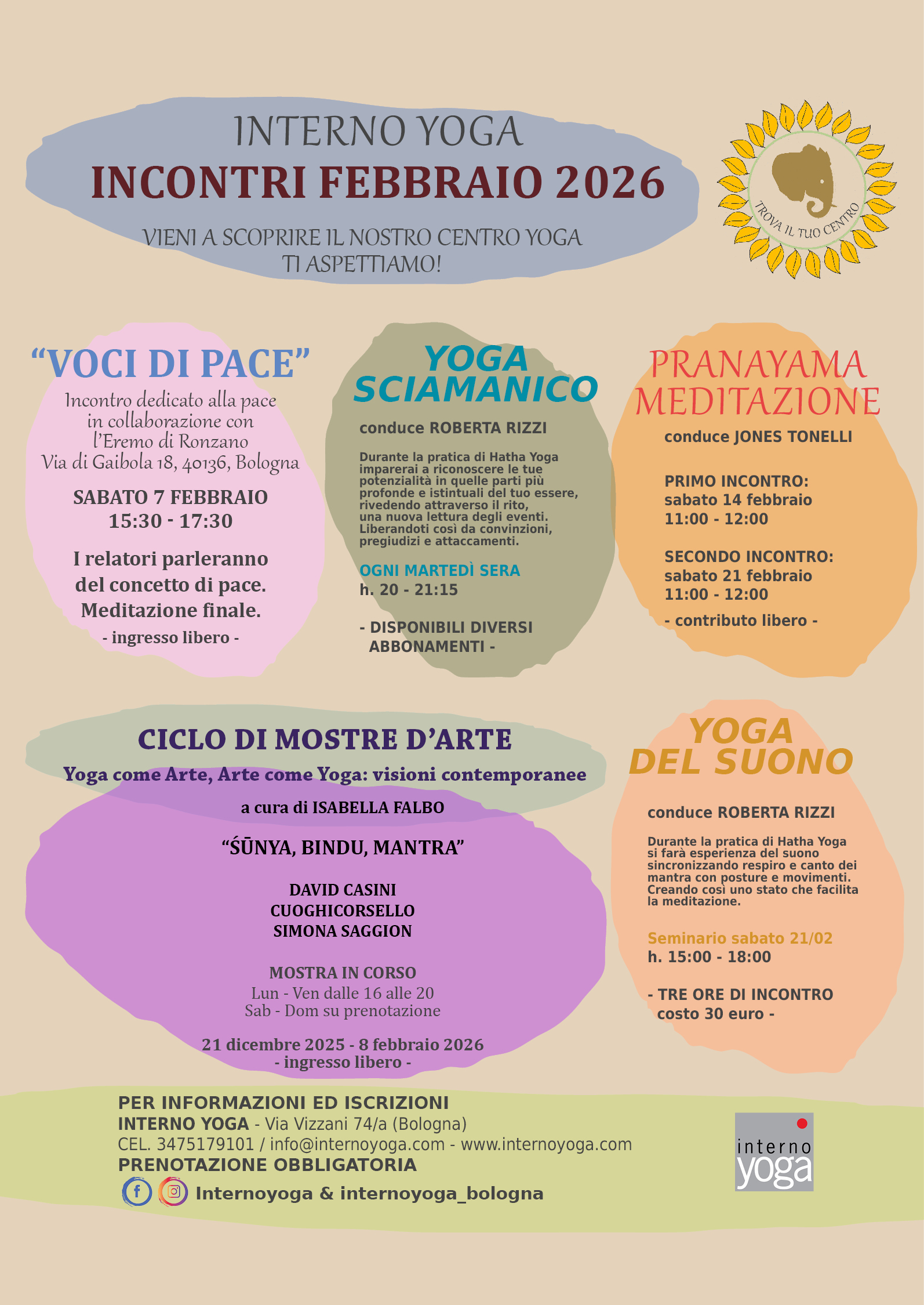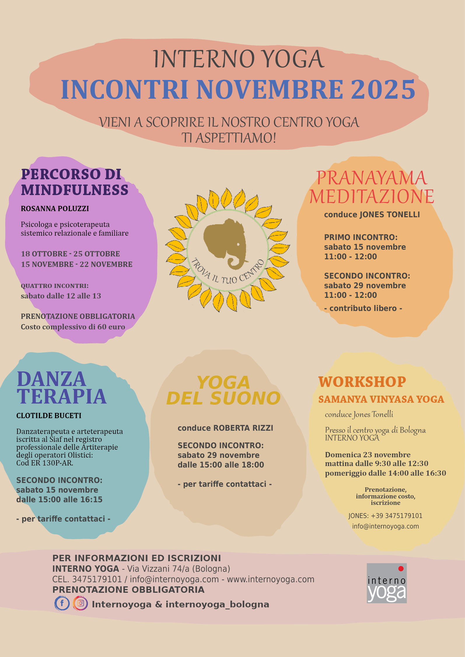 Inoltre “Interno Yoga” ha tra le sue finalità quella di promuovere la conoscenza di discipline orientali (e non) e uno stile di vita in armonia con la Natura nei suoi diversi aspetti attraverso incontri, conferenze, seminari, mostre e presentazioni di libri sul tema.