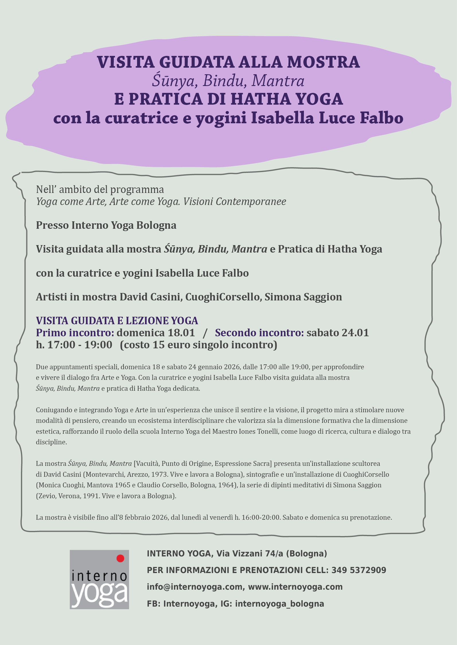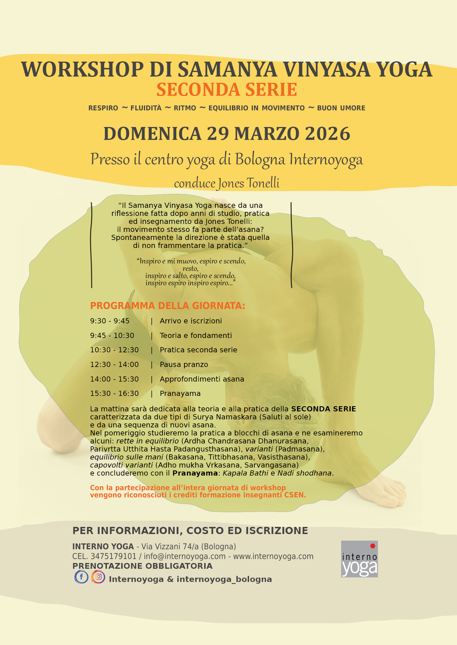 IT25Y0538702411000002476742 e inviando copia della ricevuta a info@internoyoga.com, oppure portandola in sede. È importante indicare il nome del corsista in causale.